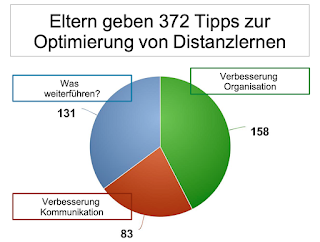 Drei offene Fragen boten den Eltern Gelegenheit, in freier Formulierung ihre Erfahrungen in der Coronaphase und darauf basierende Verbesserungstipps zum Thema Distanzlernen zu artikulieren. Diese Frage lauteten: